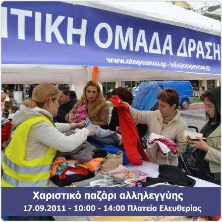 Το «Χαριστικό παζάρι» δεν είναι φιλανθρωπία, είναι έκφραση αλληλεγγύης, σε όσους και όσες βρίσκονται σε ανάγκη από τη συνεχιζόμενη οικονομική κρίση, είναι μια προσπάθεια για τη διαμόρφωση μιας εναλλακτικής μορφής οικονομικής ζωής και συνάμα μια προσπάθεια αμφισβήτησης και ακύρωσης στην πράξη της έννοιας του καταναλωτισμού, όπως αυτή έχει διογκωθεί και παραμορφωθεί από τα διαφημιστικά πρότυπα της εποχής. Αντί να φυλάμε σε ντουλάπες και αποθήκες πράγματα που δε χρησιμοποιούμε πια, μπορούμε να τα ανταλλάξουμε με κάτι άλλο, να τα χαρίσουμε σε κάποιον που τα χρειάζεται, να τα βοηθήσουμε να επαναχρησιμοποιηθούν, να διανύσουν έναν δεύτερο κύκλο ζωής στα χέρια ενός άλλου, αντί να τα φάει ο σκόρος στον πάτο μιας κούτας, ή να καταλήξουν στα σκουπίδια. Η επαναχρησιμοποίηση δεν είναι άμυνα ή μειονέκτημα, είναι πρόταση και στόχος. Φέρτε παιχνίδια, ρούχα, βιβλία, cd, και ότι άλλο δεν χρησιμοποιείτε και πάρτε ότι σας είναι χρήσιμο! Το Σάββατο 17 Σεπτεμβρίου 2011, 10:00 – 14:00 στην κεντρική Πλατεία Κατερίνης. Θερμή παράκληση: Μια τέτοια δράση χρειάζεται «χέρια». Παρακαλούμε, όσες και όσοι επιθυμούν να βοηθήσουν στην οργάνωση της εκδήλωσης να βρίσκονται στην πλατεία στις 9:45. http://www.otoposmou.gr/ |