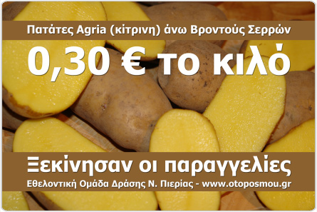 φίλοι της ΕΟΔνΠ θα μπορούν από σήμερα να παραγγείλουν μέσω της ιστοσελίδας των εθελοντών, ποσότητες μέχρι 100 κιλά ανά άτομο, προς 0,30 € το κιλό σε συσκευασίες των 20 κιλών (6 € το τσουβάλι). Η παράδοση θα πραγματοποιηθεί το Σάββατο 21 Απριλίου 2012.