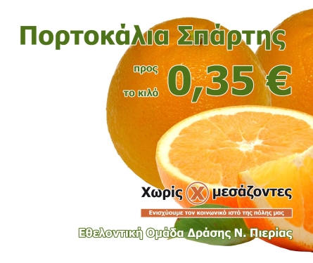 | Πορτοκάλια Σπάρτης προς 0,35 € το κιλό |